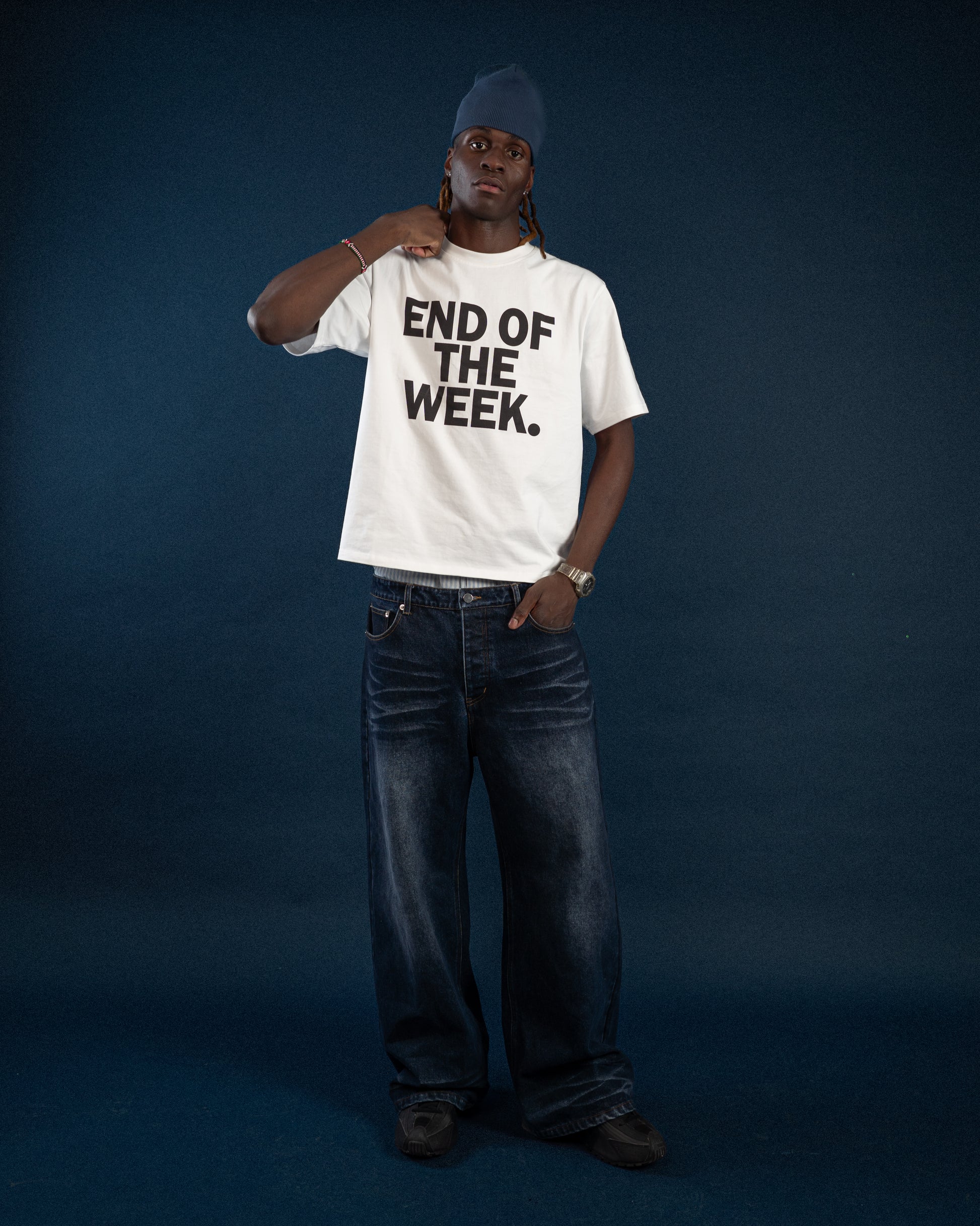 Dropped shoulders, longer sleeves, and a slightly more cropped bottom give the END OF THE WEEK T-shirt a cool boxy fit look.